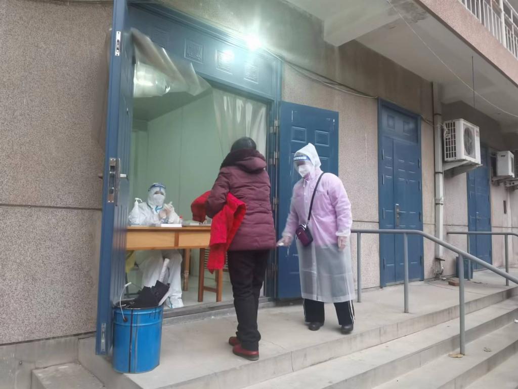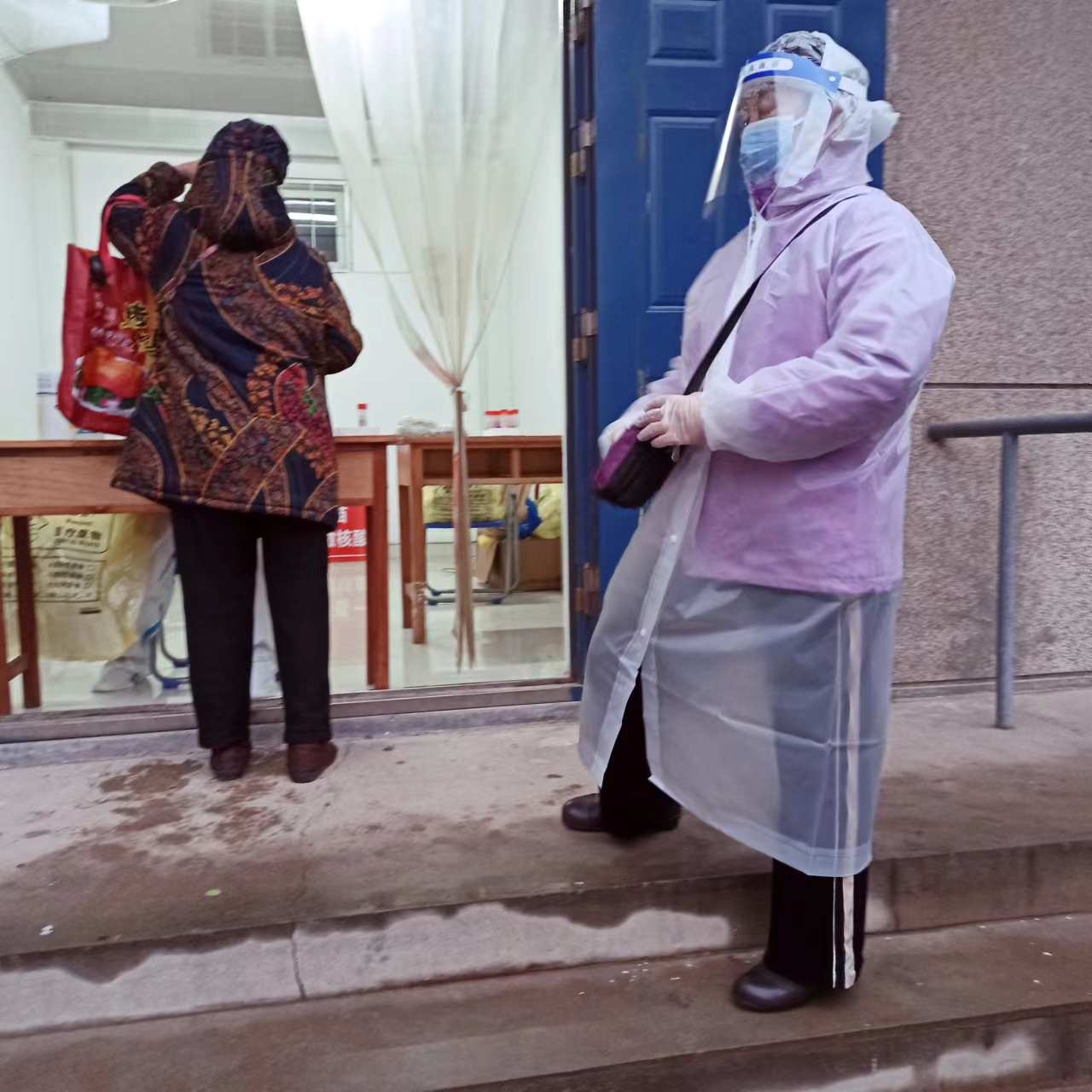 11月以来,济南疫情形势异常复杂严峻,核酸检测任务异常繁重,文东社区无法在文化东路54号院单独开展核酸检测工作,一些离退休老同志非常不方便外出到街道做核酸检测。看到老同志们的热切期盼后,后勤管理处程林、退休教师胡传英两位老师主动与文东社区联系,愿意作为社区志愿者在54号院开展核酸检测工作。
