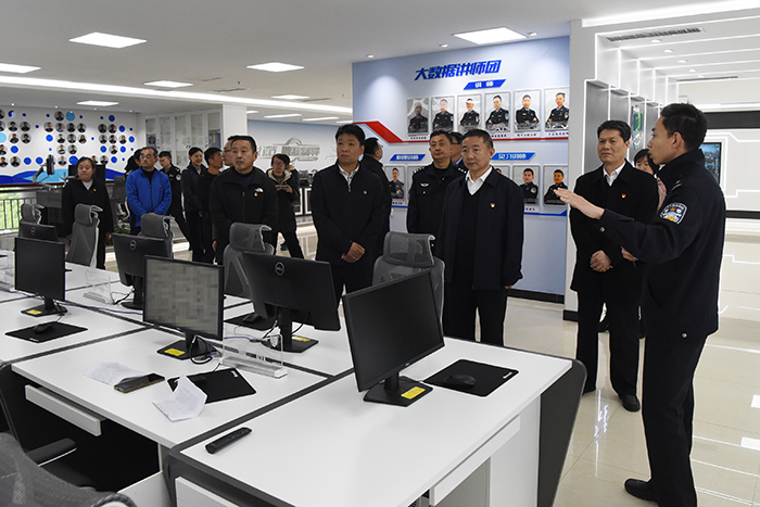 在青州市公安局,全体党员在青州市副市长、市公安局局长孙五东,市政协常委、三级高级警长陈波,局领导、政治处主任赵经泉等同志陪同下参加了学习调研活动。全体党员先后在市局智防·全媒传播中心、新型犯罪研究中心、情指行实战中心进行了实地参观学习考察,听取了相关负责同志的汇报和介绍,详细了解了青州市局以党建为引领、推动党建工作与公安业务深度融合的工作措施。双方还就党建带队建、公安人才队伍建设和推进校局合作等工作进行了深入讨论交流。