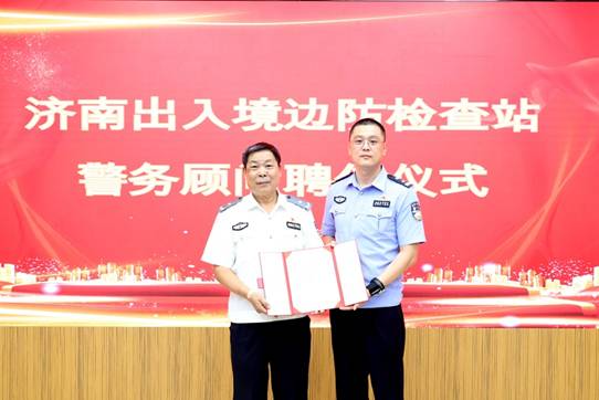 2023年8月1日,济南出入境边防检查站举办警务顾问聘任仪式,聘请我校退休干部、侦查系关工委主任、原侦查系副教授许瑞忠为该站警务专家顾问,并为其颁发聘任证书。